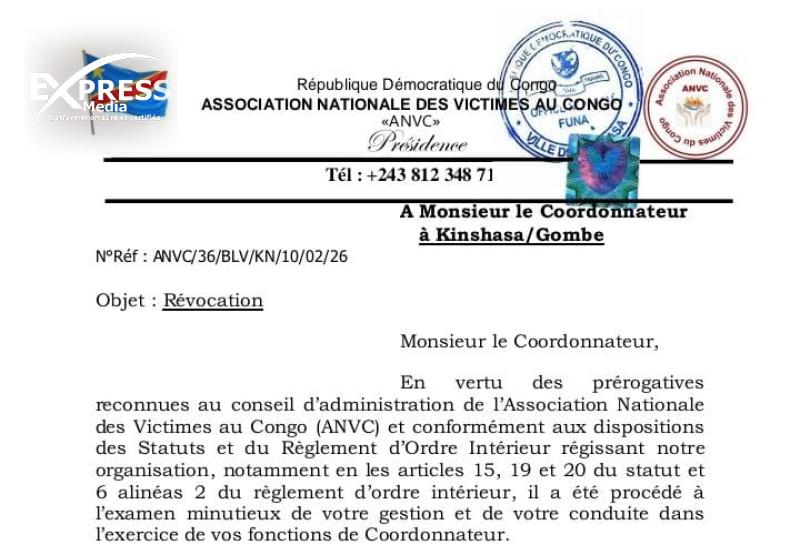 L’Association nationale des victimes au Congo (ANVC) a décidé de se séparer de son coordonnateur de la commune de Gombe, à Kinshasa, l’accusant d’avoir engagé l’organisation dans une initiative jugée incompatible avec ses orientations officielles.